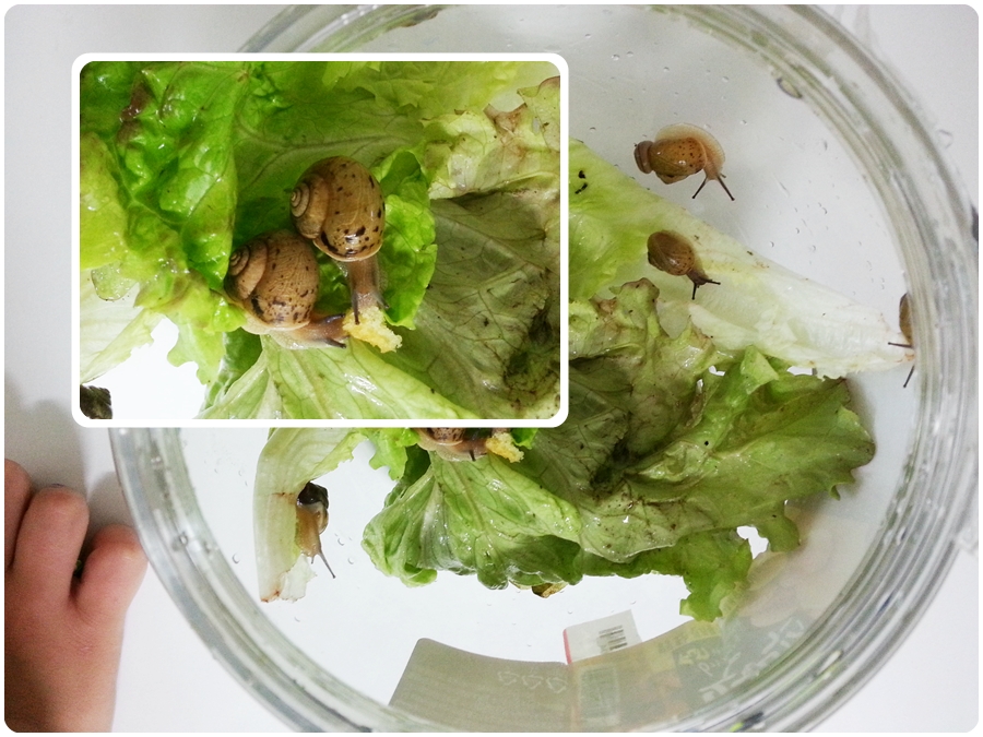 맘먹고 비오는 날  퇴근길에 달팽이를 납치해서 집에서 사육중입니다.